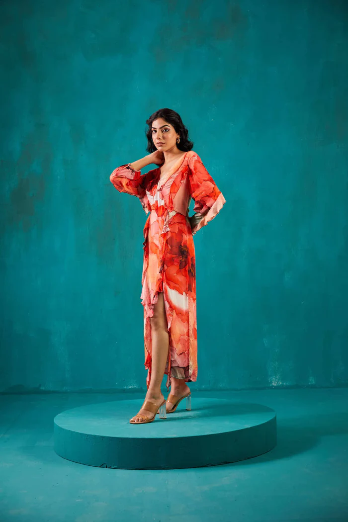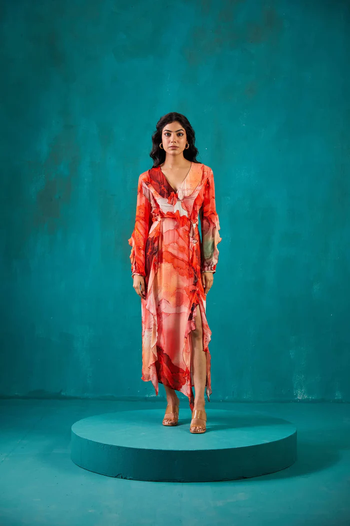 Red Printed Chiffon Dress