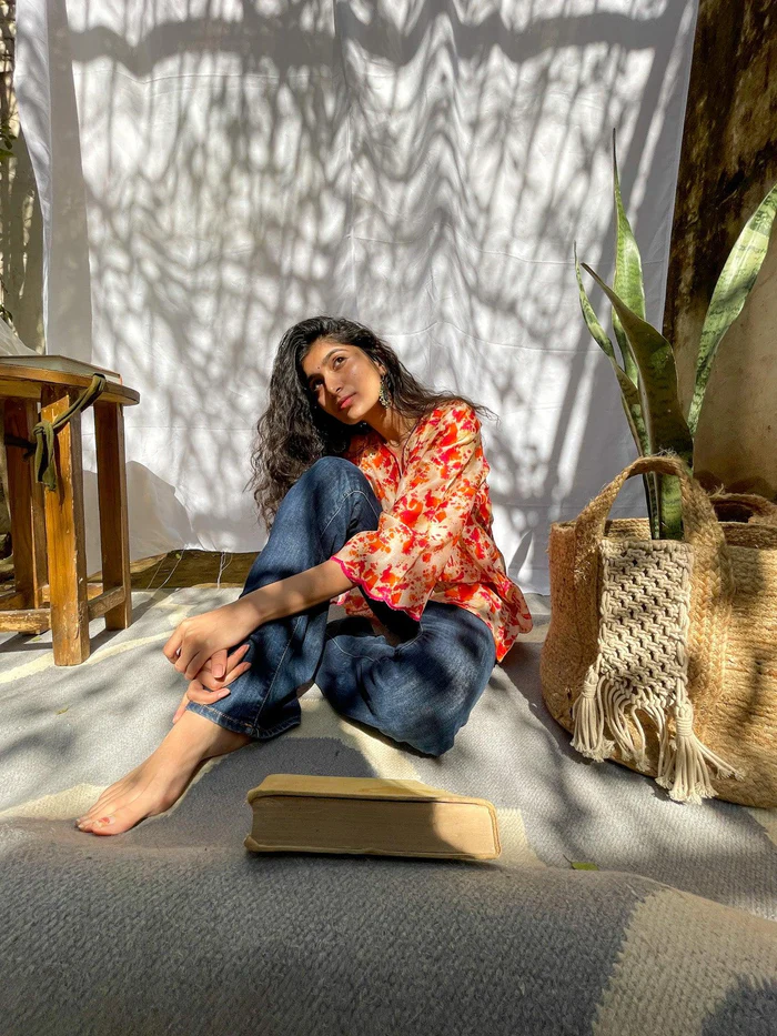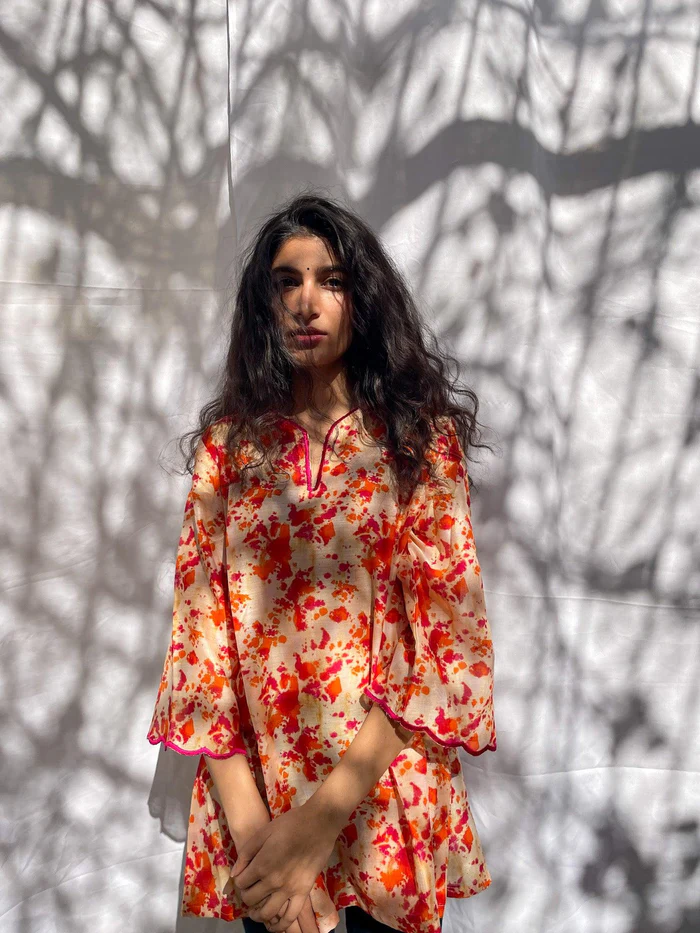 Chanderi kurta in a bright ink print tie and dye is an essential for your wardrobe this summer. Brighten up your days with this beautiful piece.