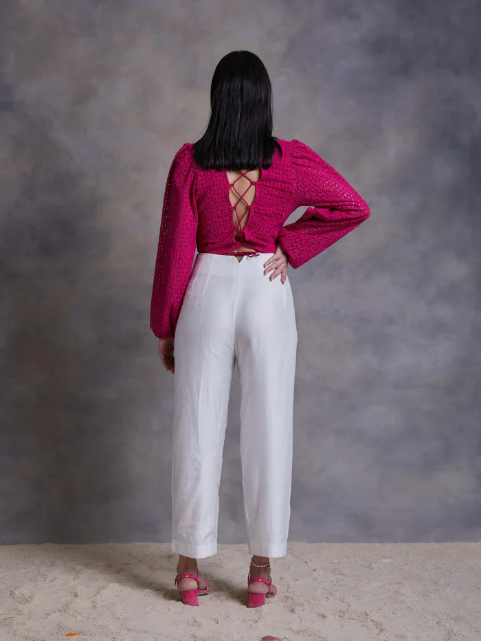 Fuchsia Cut Work Schiffli Crop Top