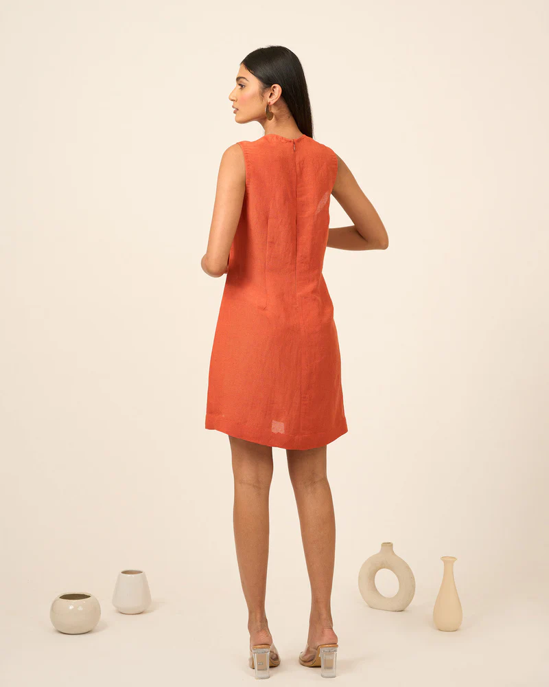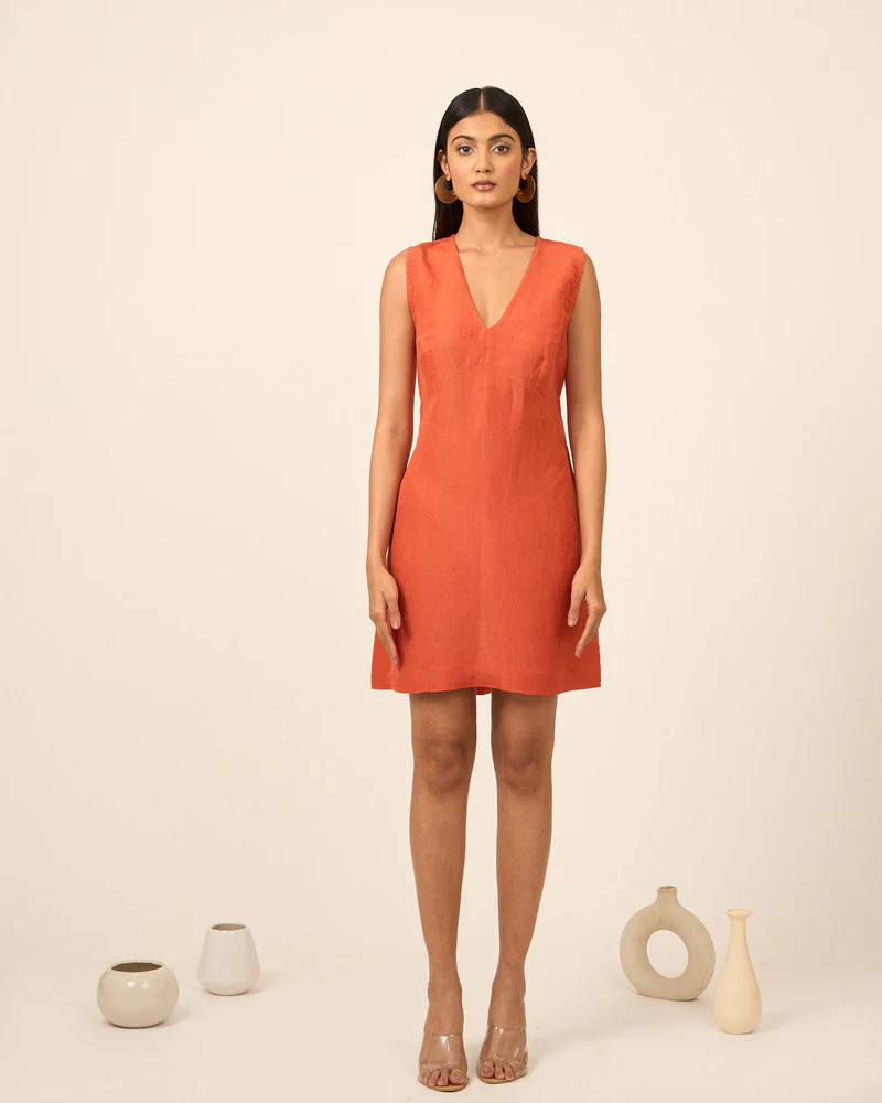 This short A- line dress comes in pure linen with a V shape neckline. This summer season is perfect for linens and essential for your wardrobe.