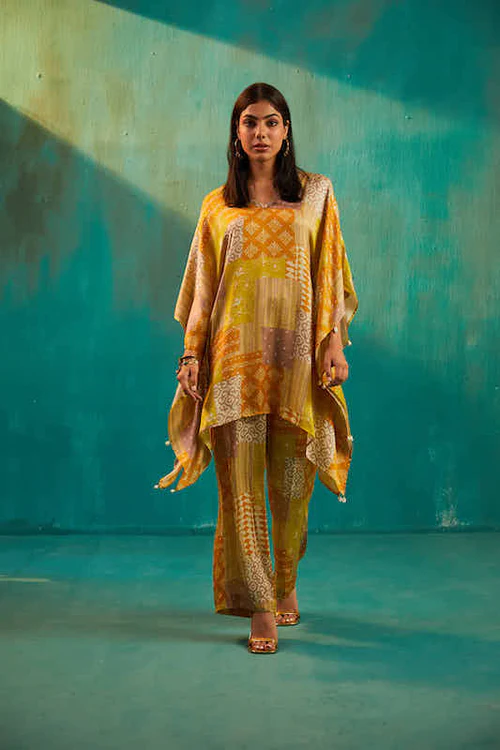 Presenting our beautiful Fuchsia abstract printed co-ord set with hand embroidery detailing on a pure habutai silk set with a long kurta and palazzo. Perfect for this festive season and a long-lasting addition to your festive wardrobe.